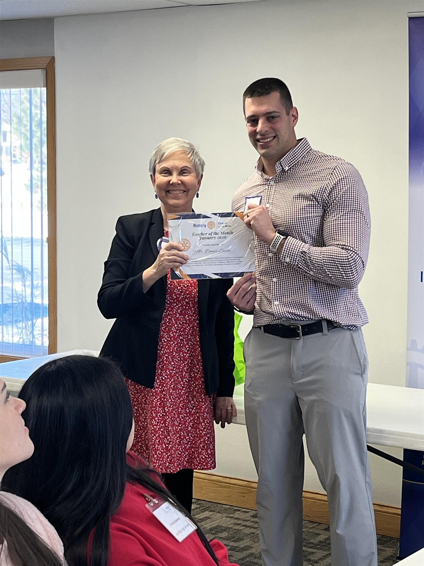 Rotary Teachers of the Month HonoredCongratulations to December and January Rotary Teachers of the Month Anita Martin-LM Rotary Club President presents certificates to: January Teachers of the Month: ![]() ![]() Dan Zaeske-Lake Mills Elementary School-4th Grade Teacher Nathan Koerber-Lakeside Spanish Teacher December Teachers of the Month: ![]() ![]() Tracy Voigt-Lake Mills Middle School-Math Teacher Wesley Towne-St. Paul's Lutheran-8th Grade Teacher Visit the Teacher of the Month page to learn more and see a list of sponsors. We are proud to recognize them both for their outstanding dedication, creativity, and commitment to our students. Your hard work inspires excellence every day, and we are truly grateful for the positive impact you make in our school community. Thank you for all that you do! Thank you to our generous sponsors! |